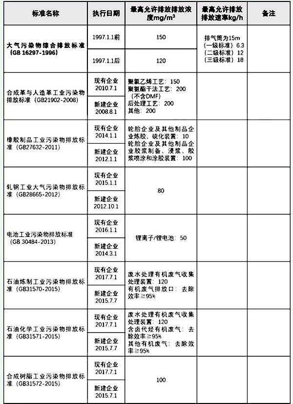 國家VOCs有機(jī)廢氣排放標(biāo)準(zhǔn)