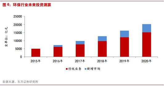 2.十三五進(jìn)入補(bǔ)舊賬階段,治理打開產(chǎn)業(yè)成長空間 霧霾、黑臭水體等嚴(yán)重環(huán)境問題的凸顯,致使我國不得不從利用降低環(huán)境成本來推動(dòng)經(jīng)濟(jì)增長轉(zhuǎn)向環(huán)境成本回歸、力圖恢復(fù)生態(tài)環(huán)境的全面治理階段:十三五以及未來的10-20年,將圍繞氣十條、水十條、土十條三大領(lǐng)域的重點(diǎn)整治,投資主線從減排轉(zhuǎn)向治理:1)原有的減排力度要加大,煙氣治理提標(biāo)、污水處理提標(biāo)、固廢處理設(shè)施投入加大等;2)補(bǔ)舊賬:針對氣、水、土壤的修復(fù)工作。未來五年必須加大投資,才能保證環(huán)境質(zhì)量出現(xiàn)拐點(diǎn)。 利用我們上市公司業(yè)務(wù)模塊模型來分析,進(jìn)入治理階段環(huán)保產(chǎn)業(yè)的投資將全面升級:原有減排產(chǎn)業(yè)繼續(xù)保持30%左右的高增長,黑臭水體、海綿城市、土壤修復(fù)領(lǐng)域給行業(yè)帶來巨大增量。從我們的測算看,“十三五”,水、氣、固廢三大領(lǐng)域的原有業(yè)務(wù)模式將繼續(xù)保持20-30%的增速,而水環(huán)境、海綿城市、土壤修復(fù)將帶動(dòng)1.5-2萬億的投資,年投入3000-4000億元為環(huán)保投入增量。加上傳統(tǒng)業(yè)務(wù)15年環(huán)保投資體量5000億的基礎(chǔ)上每年保持25%的增長,環(huán)保行業(yè)年投資體量將從4000-5000億上升到1-1.5萬億。因此,綜合治理打開環(huán)保產(chǎn)業(yè)投資空間,未來的大公司將圍繞該領(lǐng)域產(chǎn)生。 上市公司業(yè)務(wù)收入結(jié)構(gòu)將發(fā)生變化,水環(huán)境、土壤修復(fù)相關(guān)業(yè)務(wù)占比將迅速上升。由于對融資能力、公司項(xiàng)目執(zhí)行能力要求更高,上市公司產(chǎn)業(yè)市場份額將上升。保守估計(jì),到十三五末,環(huán)保產(chǎn)業(yè)真實(shí)年投入達(dá)到1.5萬億,預(yù)計(jì)上市公司收入體量有望達(dá)到5000億以上。