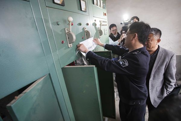 ??? 貼完封條,環(huán)保部門決定對企業(yè)拉閘斷電?!皩`法企業(yè)來說,斷了電,不關(guān)停也得關(guān)停?!惫╇姽菊业狡髽I(yè)的配電室,將車間對應(yīng)的電閘拉下,并由環(huán)保執(zhí)法人員貼上封條。