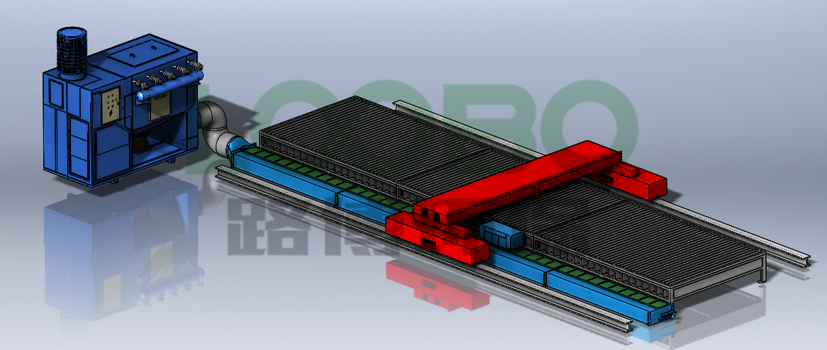 根據(jù)切割工作平臺(tái)的寬度,可分為單滑動(dòng)風(fēng)道吹吸式(寬度<4.5m)和雙滑動(dòng)風(fēng)道吹吸式(寬度>4.5m)。